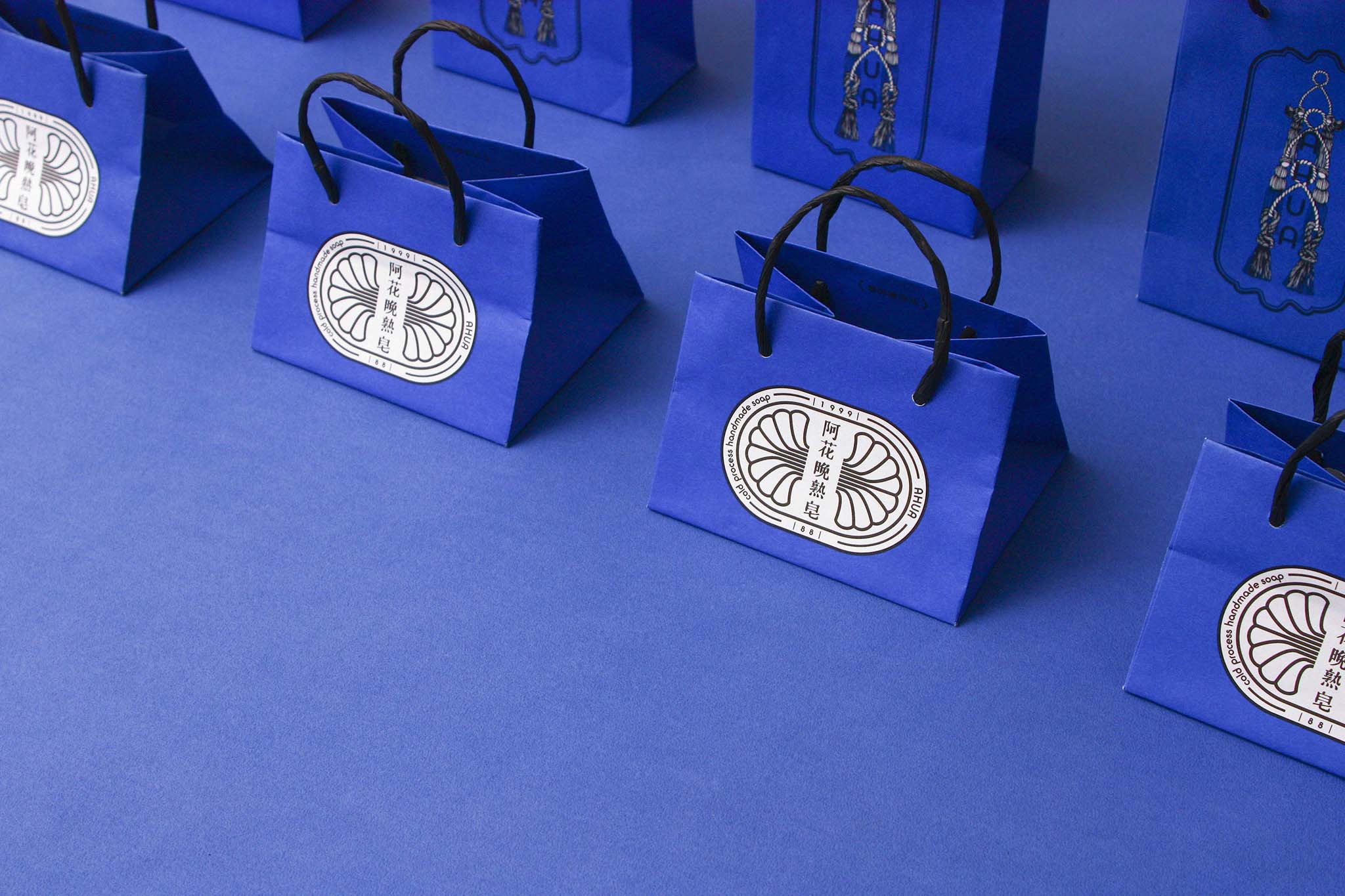 手工皂來自於西方,阿花來自台灣. 阿花是一種態度與個性,一種純樸實在且熱心的精神. 創辦人想念著阿嬤,也傳承著阿嬤精神,取之於自然尊重天地智慧;更向所有堅韌的台灣婦女致敬. 整體視覺以歐式感為主軸,裡面藏著台灣本土的細節; 以台灣早期大家所使用的香皂外型為logo外框,與代表台灣早期的雞冠花所組成.主色系以強烈的靛藍來表現阿嬤無畏且堅毅的性格.包裝盒使用觸感溫潤的紙漿膜,呼應手工皂之天然與其溫潤.