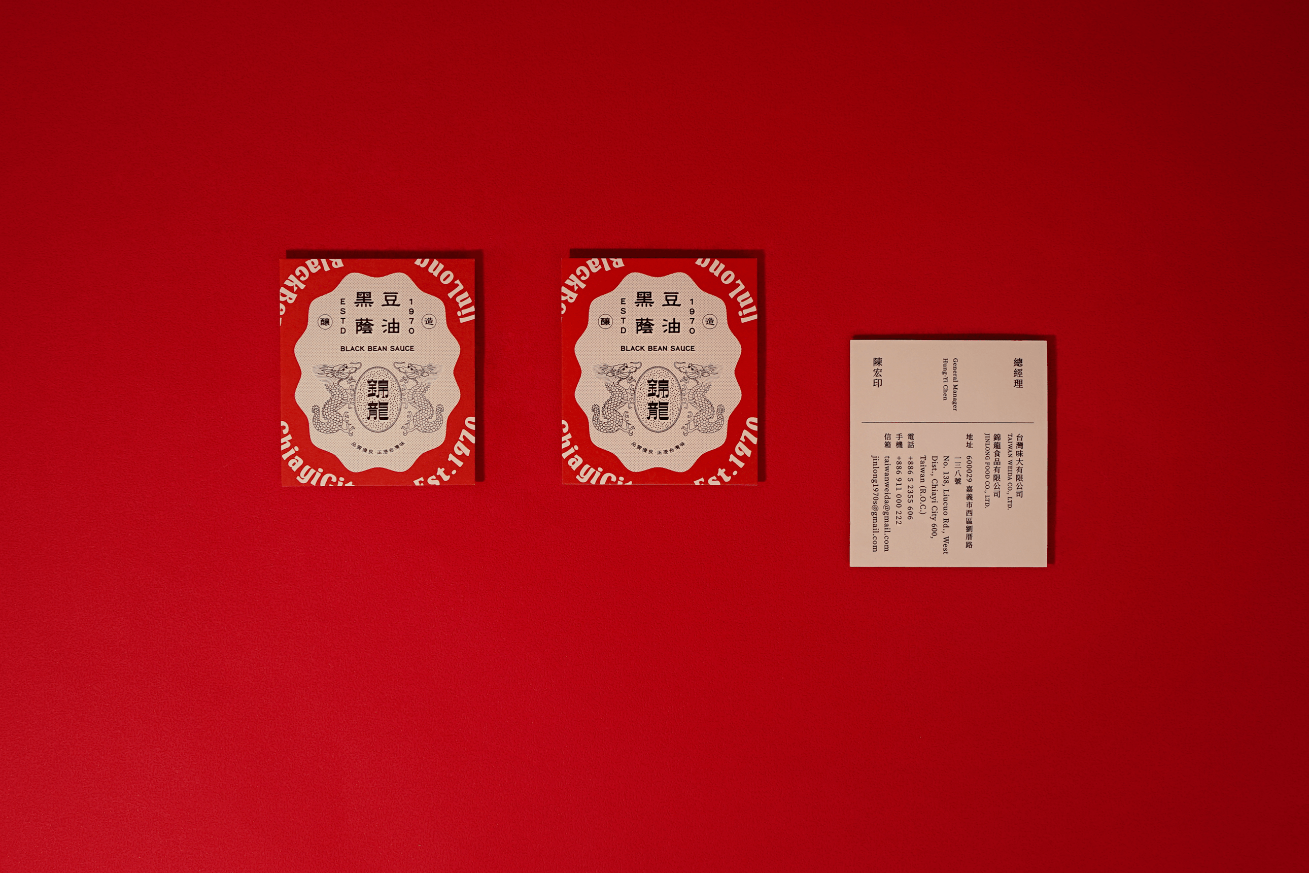醬油是家戶常備的調味品,俗又有力的紅配綠是甘醇濃厚的古早味和人情味,雋永但有新意的設計象徵錦龍與每個家庭、小吃攤相伴走過的新舊時光。Logo呼應品牌名,仿製過去民間常見的「對稱雙龍」,搭配穩重的標準字,有吉祥的祝福意味。DM設計像是傳統報刊,承襲復古的包裝視覺,又以古典的製程插圖呈現錦龍一家子的細膩和質樸。