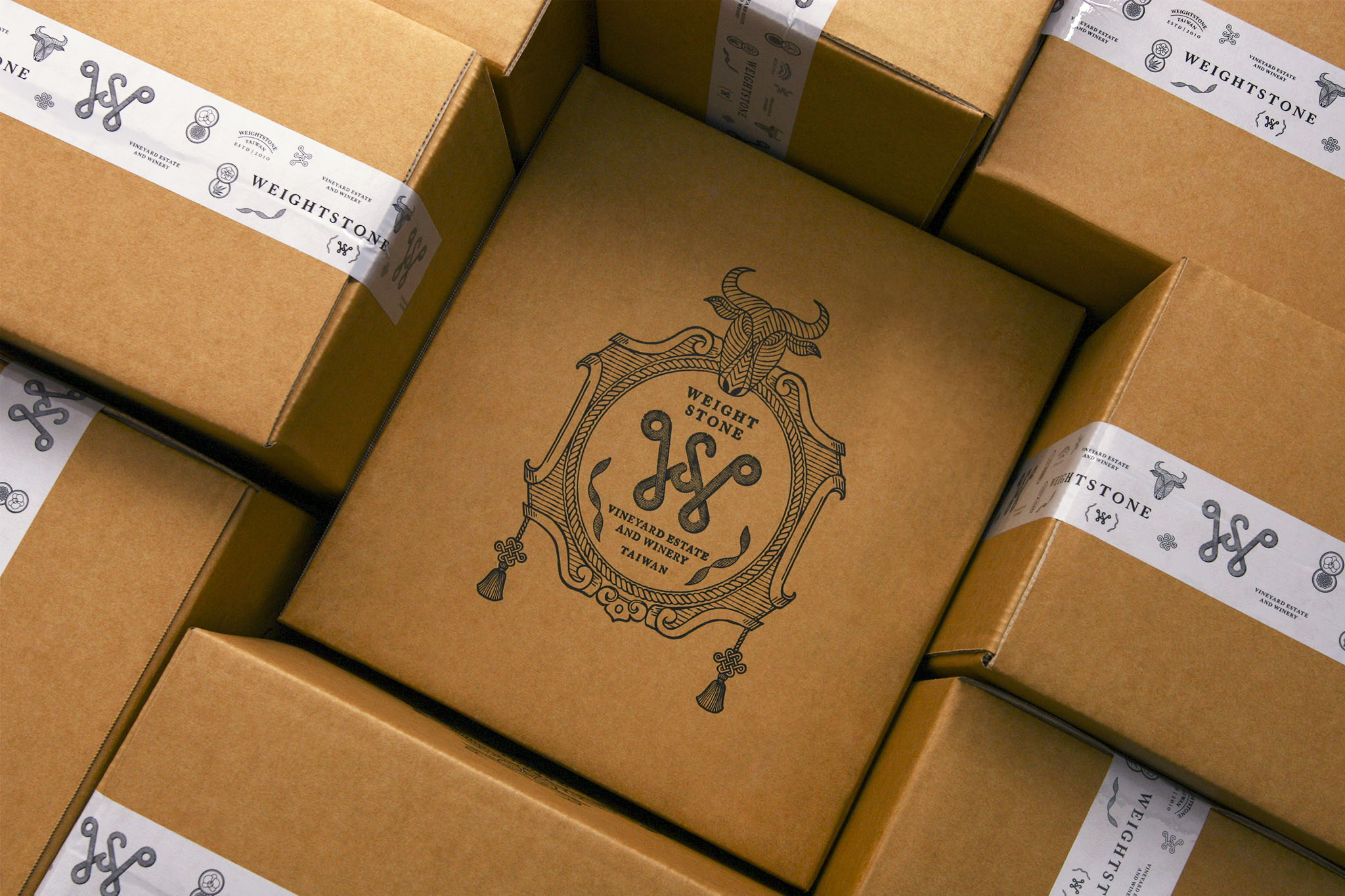 品牌logo以家徽的方式呈現, 象徵著台灣農業的牛,與其默默耕耘的精神, W與S的結合,層疊的線條透露 Weightstone 踏實的堆疊與累積。 釀製葡萄酒是西方的技術, 在視覺呈現上融入了東方的精神及文化, 代表四季的梅蘭竹菊也是敘述農業應順應天時而作, 盤長繩結、如意將品牌永續經營的概念堆疊其中, 也取核心人物,其名“亞”字作為輪廓外型。 在瓶身包裝紙將 Weightstone 的核心理念,以插畫的手法表現。 這是醞釀許久、等待開甕醒醮的酒品, 固然在設計導向除了現代(俐落的色彩分割)更保有經典的氣息。
